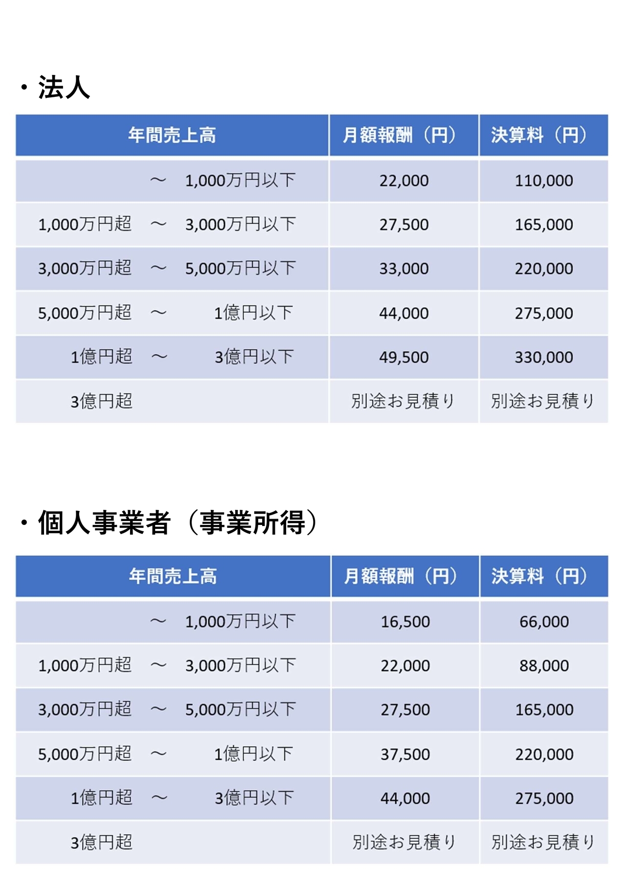 以降社員1名増加毎に2,200円追加で頂戴いたします。